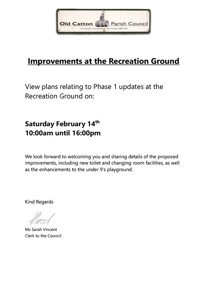 Read more: Recreation Ground Phase 1 Improvements - February 14th 10:00am to 16:00pm
