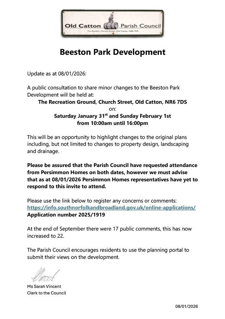 Clerk of the Council, The Parish Council Office, The Pavilion, Recreation Ground, Church Street, Old Catton NR6 7DS