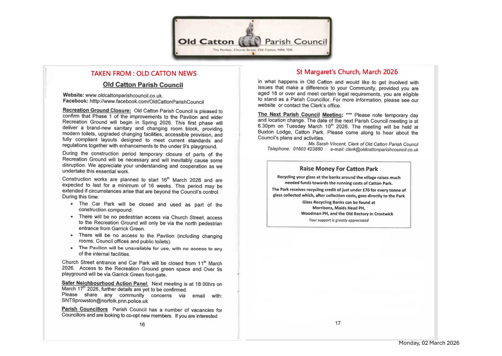 Old Catton News, March 2026 https://www.oldcattonparishcouncil.co.uk/images/2026/OCNews/March_2026.jpg Old Catton News, March 2026