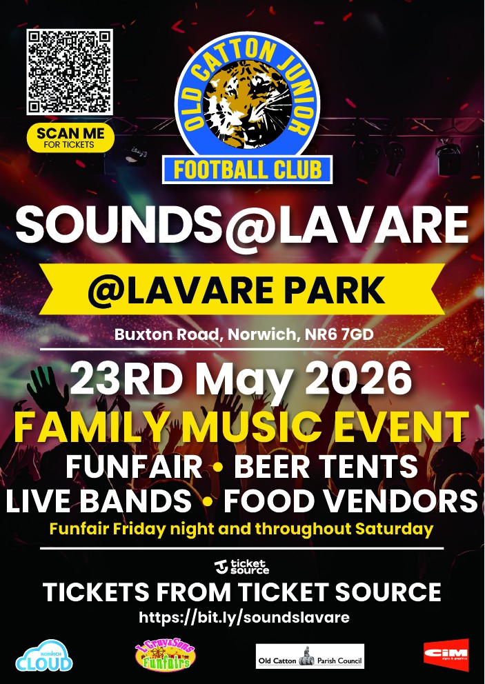Old Catton Junior Football Club - May 23rd 2026 https://www.oldcattonparishcouncil.co.uk/images/2026/Sounds_of_Lavare_Poster.jpg For latest information see: https://www.facebook.com/profile.php?id=100094862511815