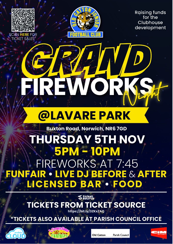 Old Catton Junior Football Club - November 5th 2026 https://www.oldcattonparishcouncil.co.uk/images/2026/Fireworks_2026_Panel.jpg For latest information see: https://www.facebook.com/profile.php?id=100094862511815