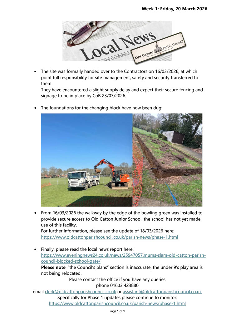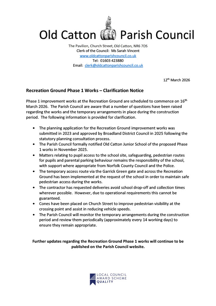 Thanks to all who attended the information event held on 14th February 2026 in relation to the Phase 1 construction works at Recreation Ground, Church Street.